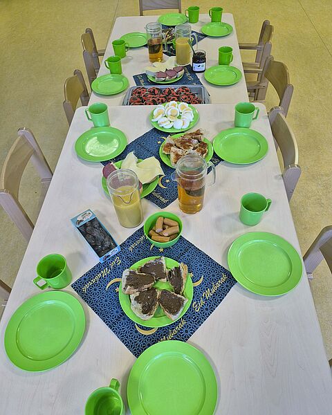 Kita-Leiterin Birgit Gersch erzählt: “Es gab für alle Gruppen ein schönes, reichhaltiges Frühstück. Die Eltern und die Kita hatten gemeinsam geplant und beide Seiten hatten etwas beigesteuert. Süßigkeiten und Leckereien spielen heute eine besondere Rolle. Viele Kinder waren besonders festlich gekleidet und berichteten von den Vorbereitungen für das traditionelle Beieinander der Familie daheim.”