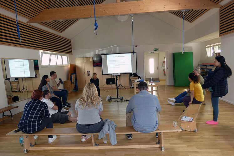Um ein ernsteres Thema ging es Mitte April an einem Samstag, als in Kooperation mit dem Gemeinwesenverein Heerstraße Nord e.V. ein kostenloser Erste-Hilfe-Kurs am Kind für die Eltern stattfand. Im Gruppengespräch mit einer medizinischen Fachkraft ging es um Unfallverhütung, das sichere Kinderzimmer und vor allem auch um direkte Maßnahmen im Notfall. “Es kamen Fragen wie ‘was passiert, wenn mein Kind keine Luft bekommt oder sich verbrennt’”, berichtet der Kita-Leiter. “Die Kinder wurden für die Dauer des Kurses von uns betreut und für das leibliche Wohl war mit Obst, Snacks, Tomatensuppe zum Mittagessen und Getränken gesorgt. Die Veranstaltung war sehr, sehr gut gemacht – und tolles Wetter hatten wir auch noch!"