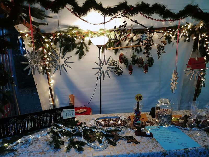 Im Vorfeld wurde eifrig gewerkelt und es entstanden unter anderem Schlüssel- und Engelanhänger, Schoko- und Zuckeräpfel, weihnachtliche Dekosterne und Armbänder, die unser Hort-Team an seiner Bude verkaufte.