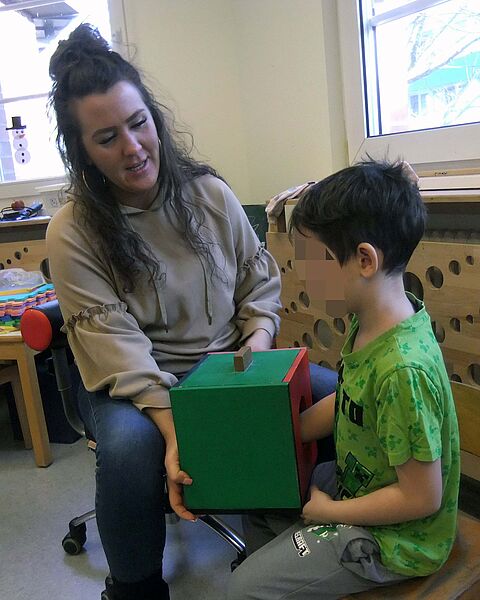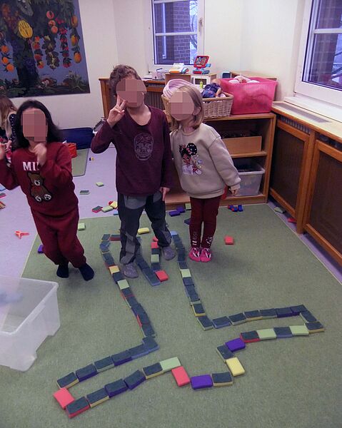"Viel zu oft richten wir unsere Aufmerksamkeit auf die visuelle Wahrnehmung, also, auf das, was wir sehen", erklärt die Erzieherin. "Wir können aber beispielsweise Formen wie Kreis, Viereck oder Rechteck nicht nur lernen, in dem wir sie ansehen, sondern auch in dem wir sie mit unseren Händen ertasten. Das hat wirklich Spaß gemacht und die Kinder haben dabei mit Raute und Trapez sogar noch neue Formen kennengelernt. Danach haben wir die Raum-Lage-Wahrnehmung und das räumliche Denken gefördert, in dem sich jedes Kind mit dem jeweils gleichen Set an geometrischen Figuren ein Gebilde ausdenken konnte, das die anderen nachbauen sollten. Das war auch für die Erwachsenen manchmal kniffelig!